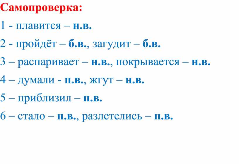 4 – думали- п.в., жгут – н.в.