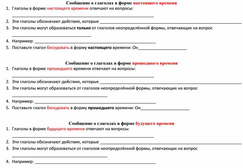 Сообщение о глаголах в форме настоящего времени