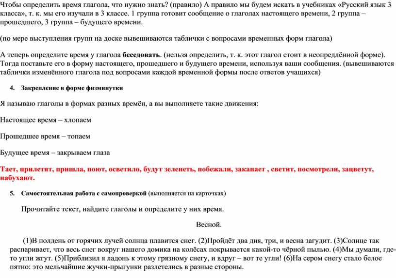 Прочитайте текст, найдите глаголы и определите у них время.