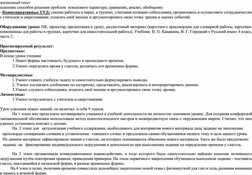Мой урок русского языка по теме «Время глагола» состоялся в 4 классе.