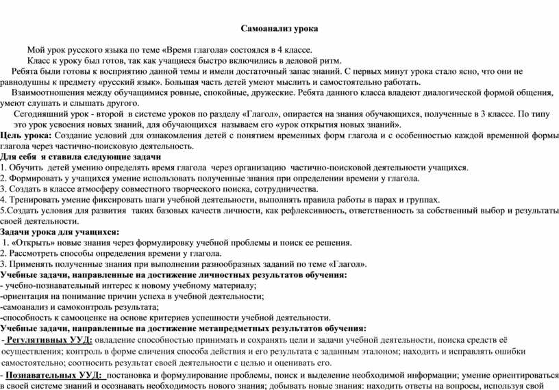 Самоанализ урока