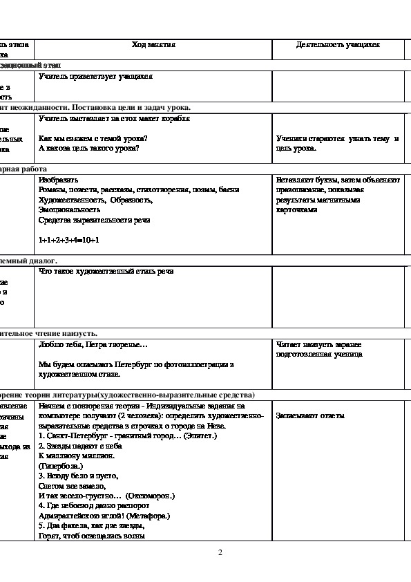 Обучающие: определение функций художественного стиля, роли выразительных средств в нем.