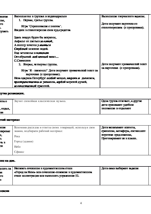 Тип урока: урок повторения, систематизации и обобщения знаний, закрепления умений, подготовка к сочинению-описанию в художественном стилеконспект