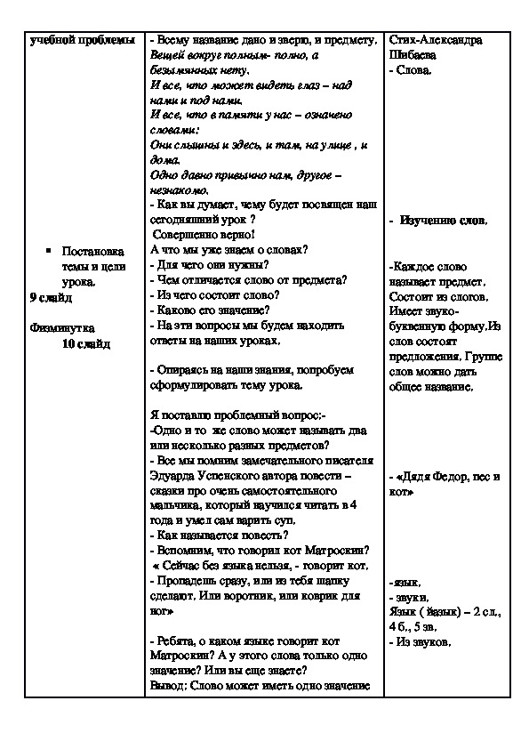 Название урока: Урок русского языка УМК «Перспектива» по теме «Слова с