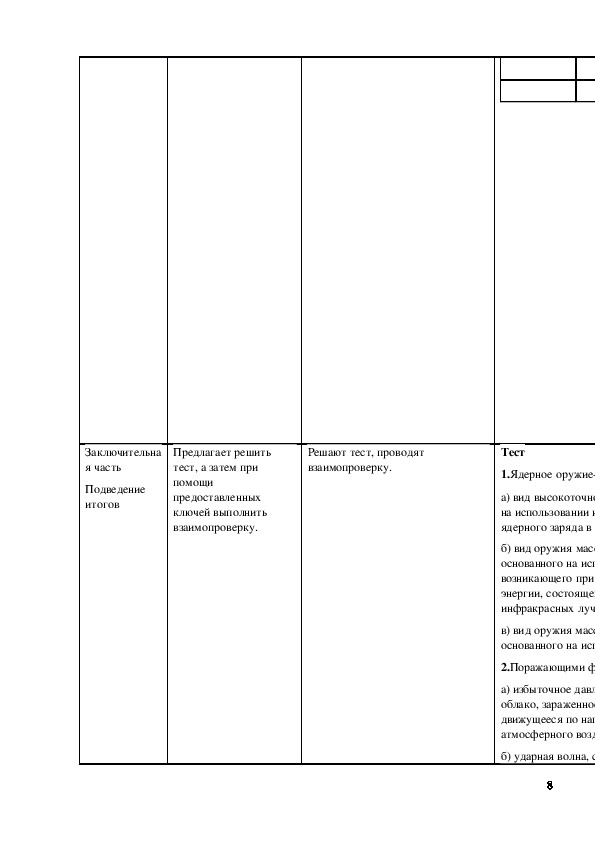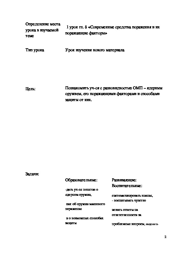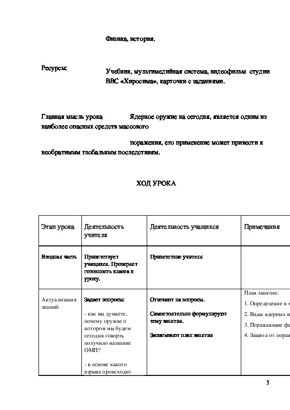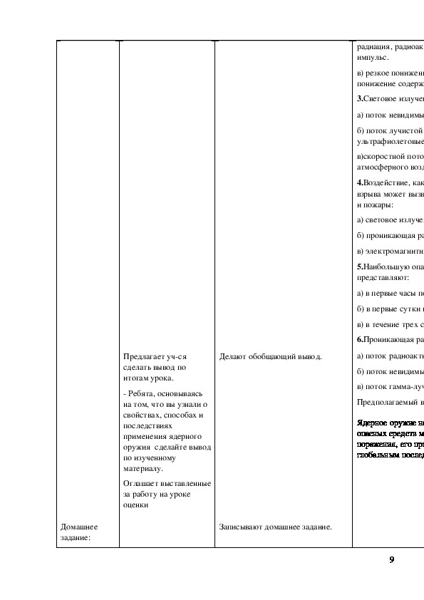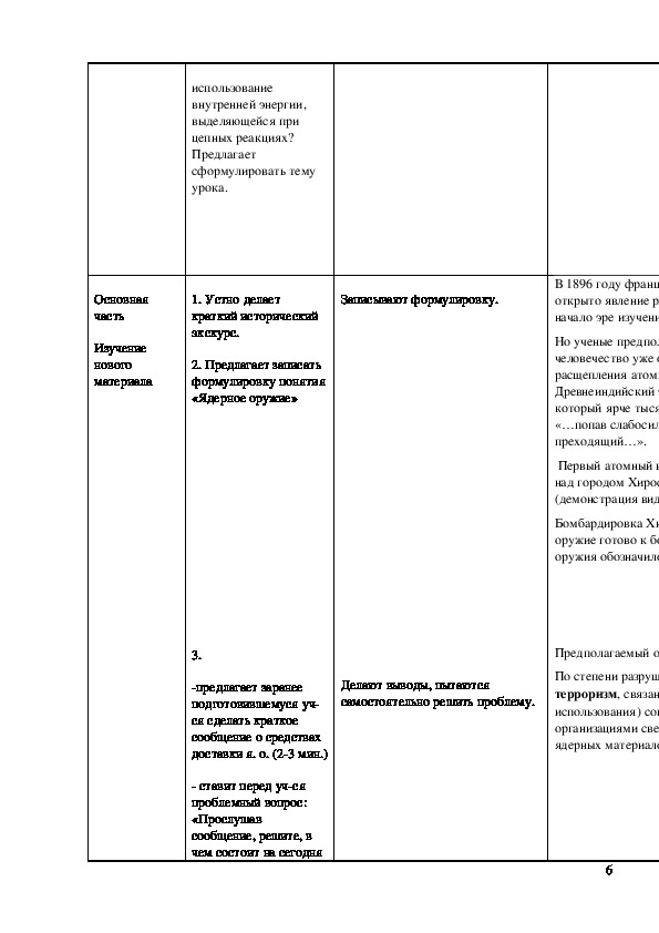 Технологическая карта урока в 10 классе по теме: «Ядерное оружие и его