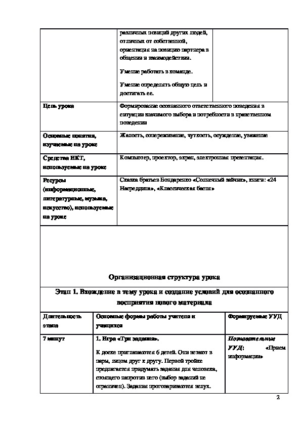 Этап 1. Вхождение в тему урока и создание условий для осознанного