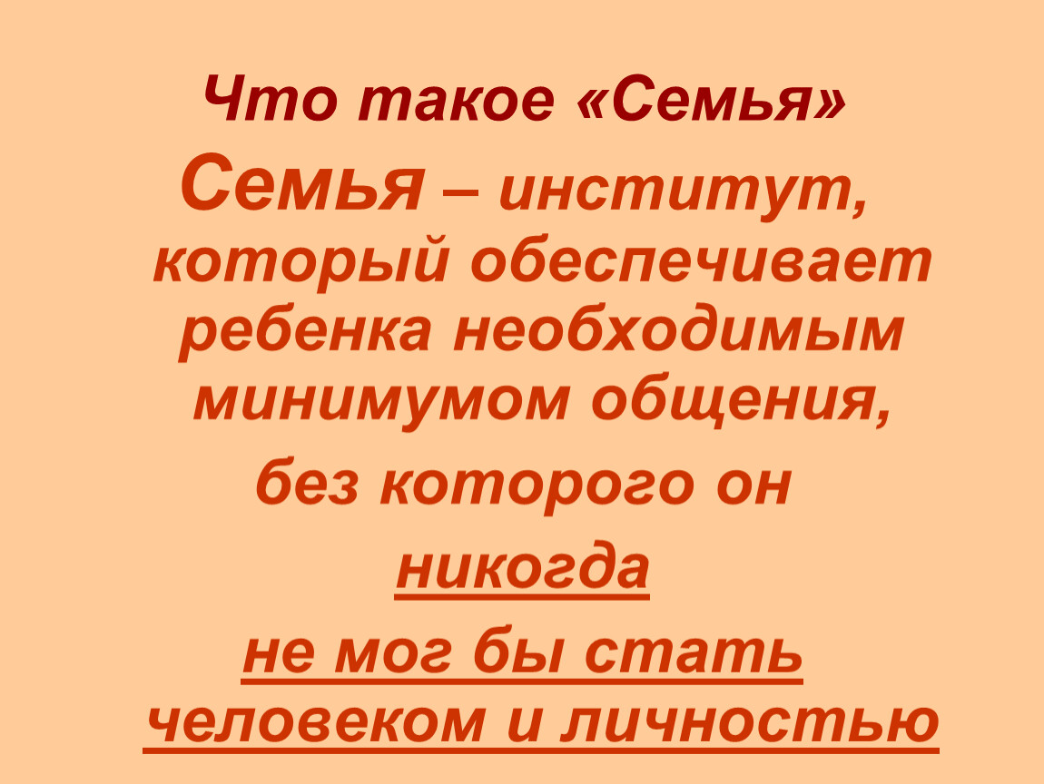 Семья – институт, который обеспечивает ребенка необходимым минимумом общения,