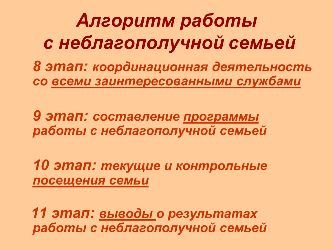 11 этап: выводы о результатах работы с неблагополучной семьей
