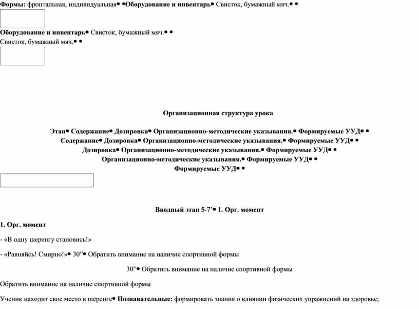 Методы: словесный, практический, наглядный; Формы: фронтальная, индивидуальная |