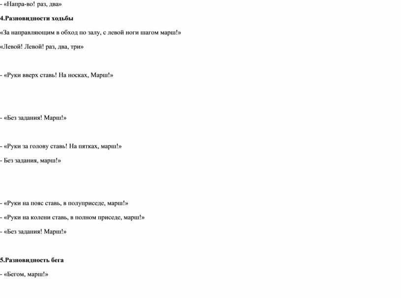 - «Руки на пояс ставь! Приставными шагами, правым боком, марш!» - «Левым боком, марш!» - «Без задания, марш!» - «Шагом марш!»