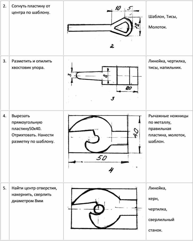 Рычажные ножницы по металлу, правильная пластина, молоток, шаблон. |