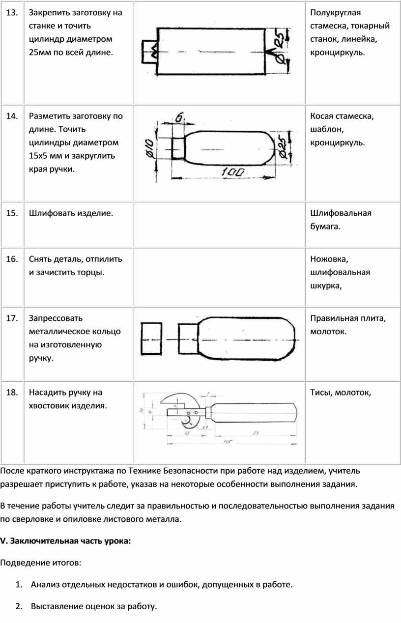 В течение работы учитель следит за правильностью и последовательностью выполнения задания по сверловке и опиловке листового металла.