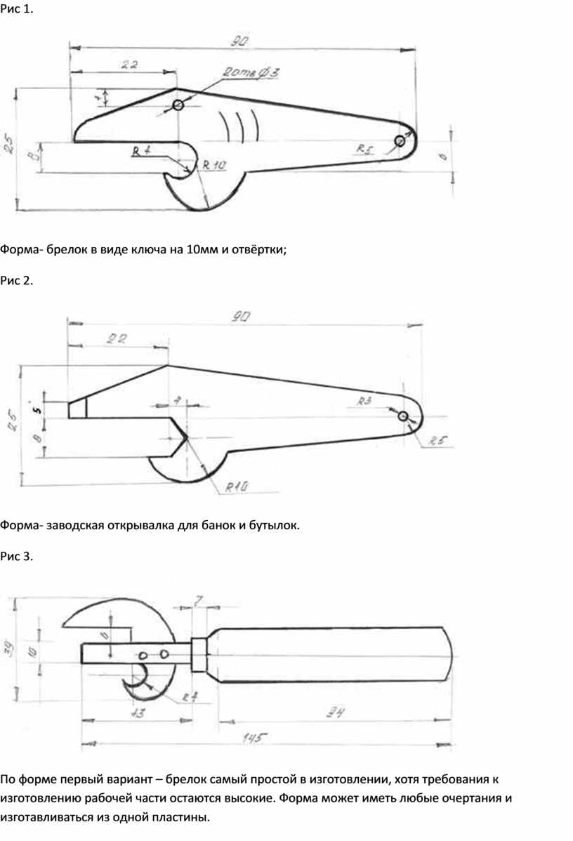 По форме первый вариант – брелок самый простой в изготовлении, хотя требования к изготовлению рабочей части остаются высокие. Форма может иметь любые очертания и изготавливаться из одной пластины.
