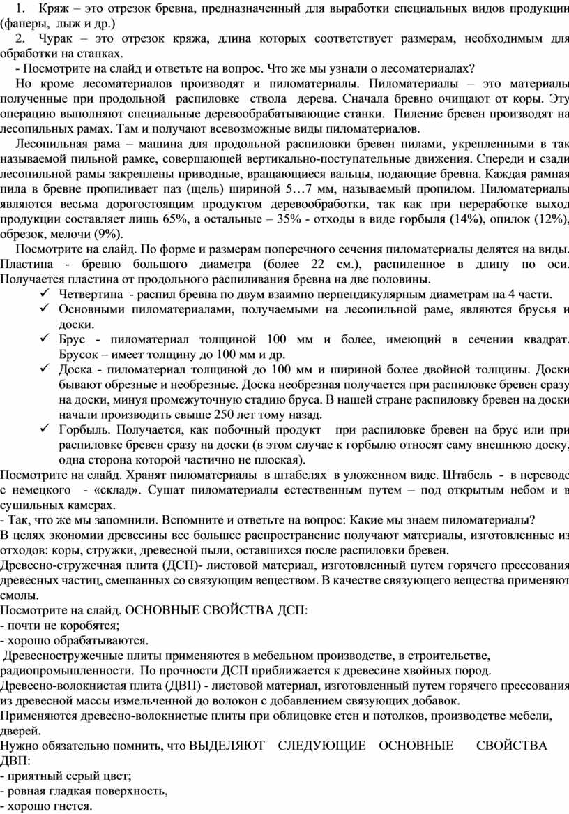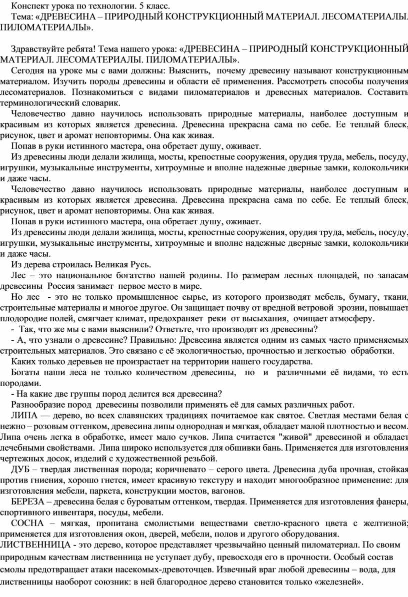 Тема: «ДРЕВЕСИНА – ПРИРОДНЫЙ КОНСТРУКЦИОННЫЙ МАТЕРИАЛ. ЛЕСОМАТЕРИАЛЫ. ПИЛОМАТЕРИАЛЫ».