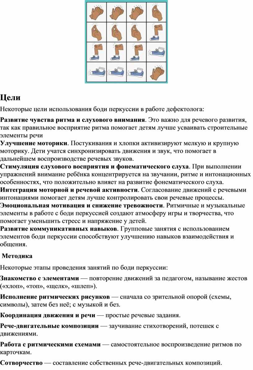 Некоторые цели использования боди перкуссии в работе дефектолога: