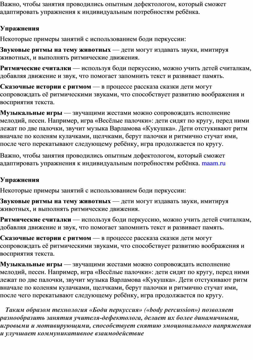 Техника боди перекуссии в работе учителя – дефектолога