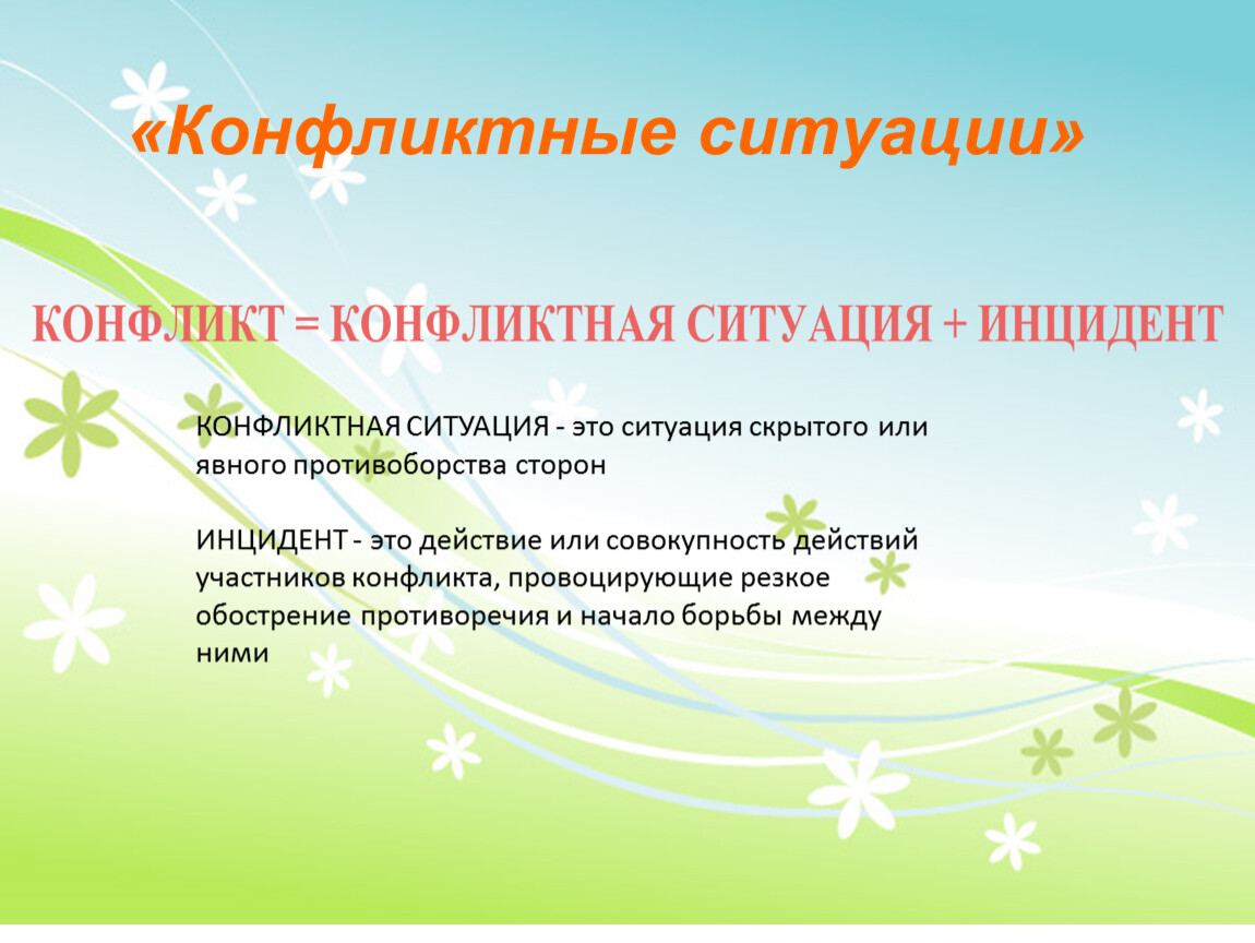ИНЦИДЕНТ - это действие или совокупность действий участников конфликта, провоцирующие резкое обострение противоречия и начало борьбы между ними