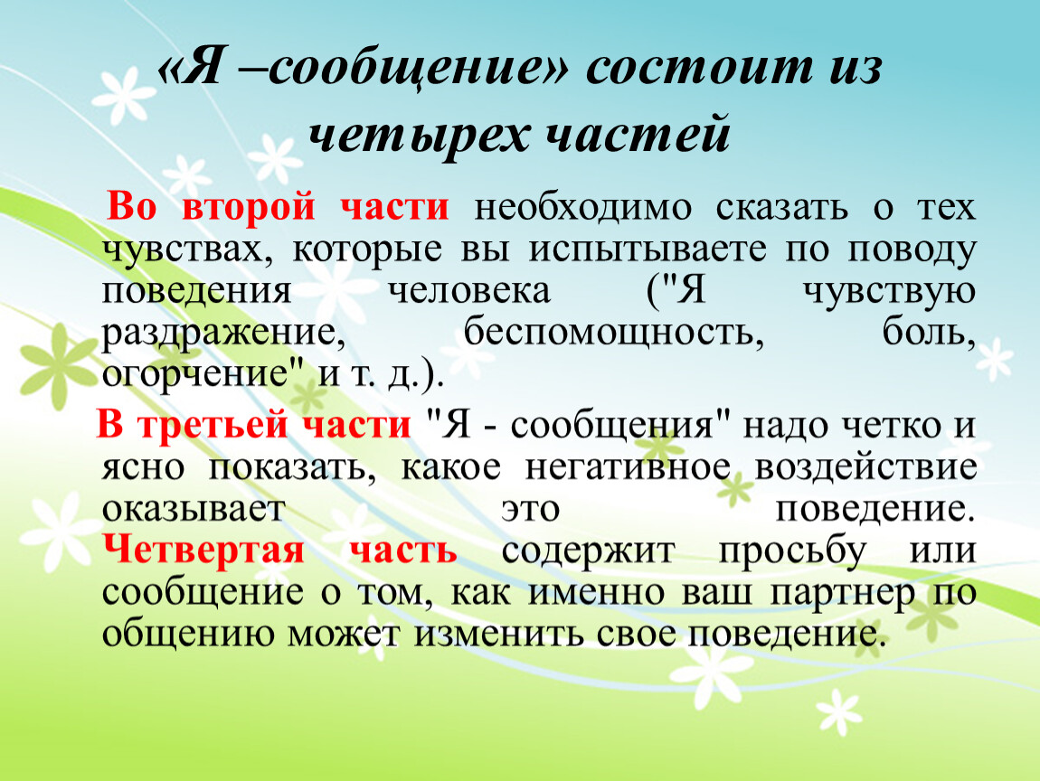 «Я- сообщение» состоит из четырех частей