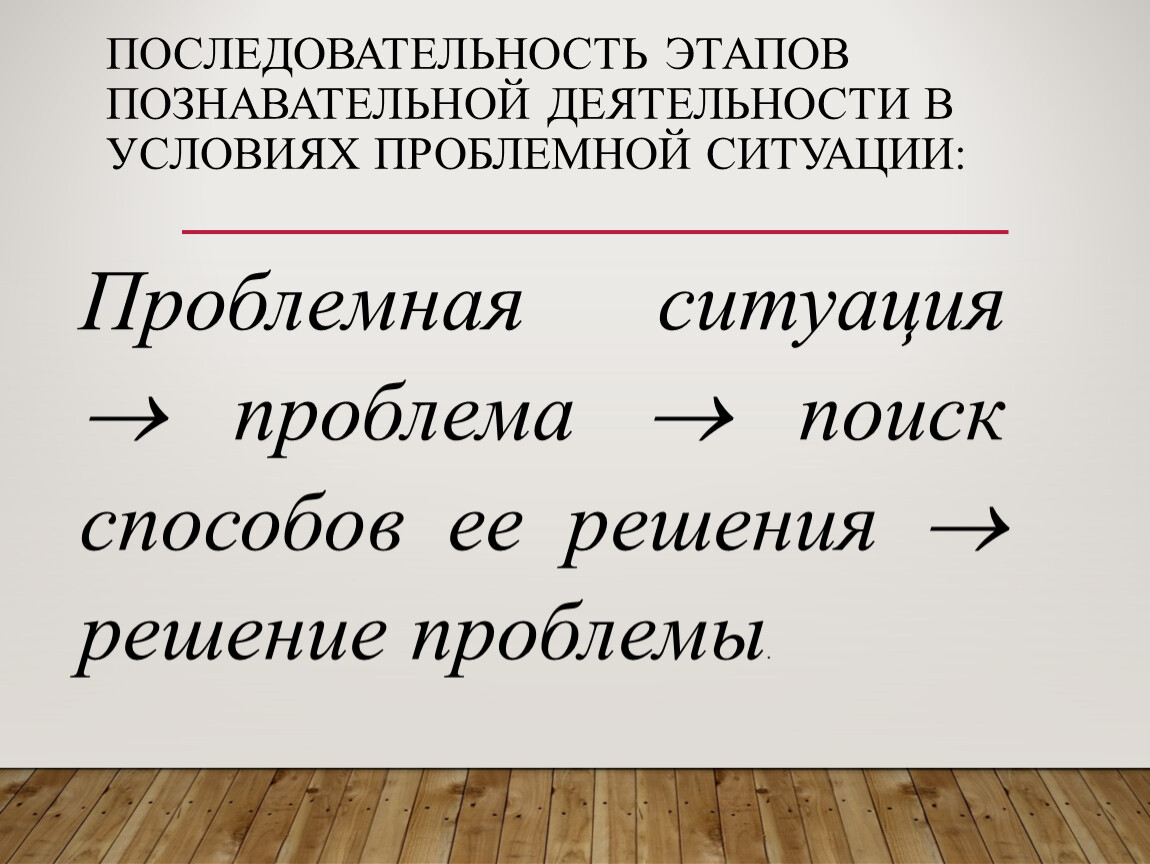 Последовательность этапов познавательной деятельности в условиях проблемной ситуации:
