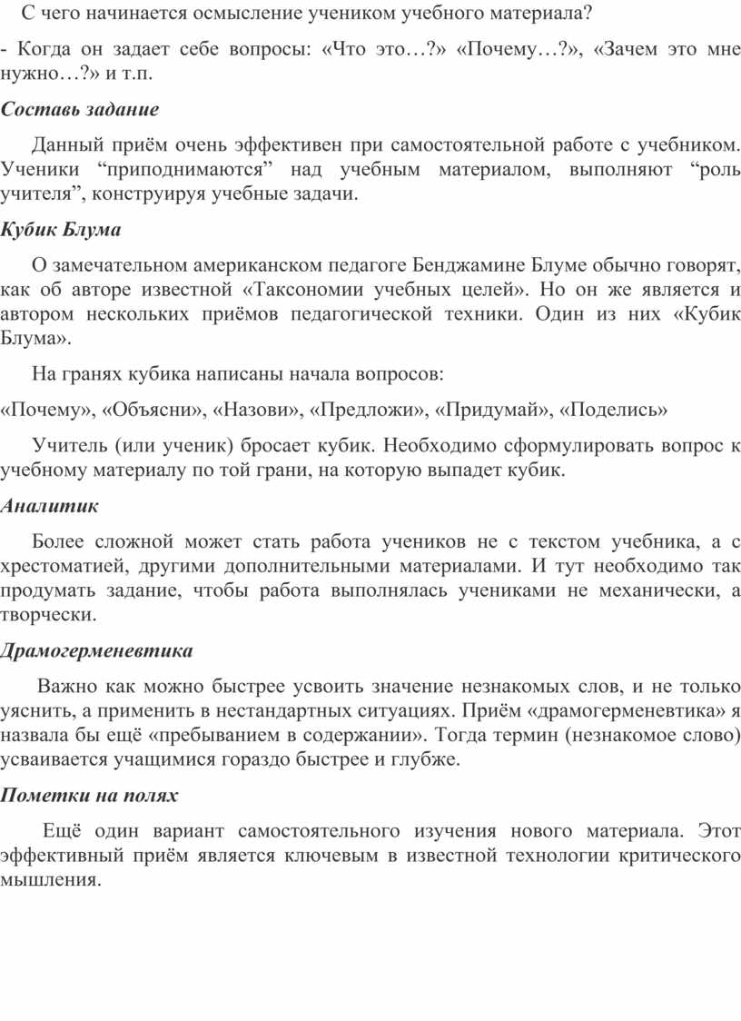 Ещё один вариант самостоятельного изучения нового материала. Этот эффективный приём является ключевым в известной технологии критического мышления.
