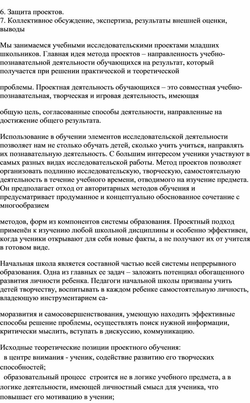 методов, форм из компонентов системы образования. Проектный подход применён к изучению любой школьной дисциплины и особенно эффективен, когда ученики открывают для себя новые факты, а не получают их от учителя в готовом виде.