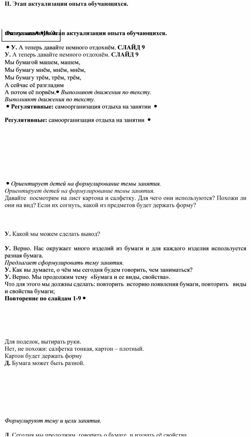 II. Этап актуализации опыта обучающихся.