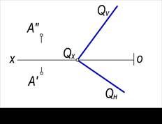 Bu gorizontalning frontal izi h″V yasalib, undan izlangan P tekislikning PV izini berilgan tekislikning QV iziga parallel qilib o‘tkaziladi. So‘ngra PVÇOx=PX nuqtasidan Q tekislikning QH iziga parallel qilib izlangan tekislikning PH izi o‘tkaziladi.
