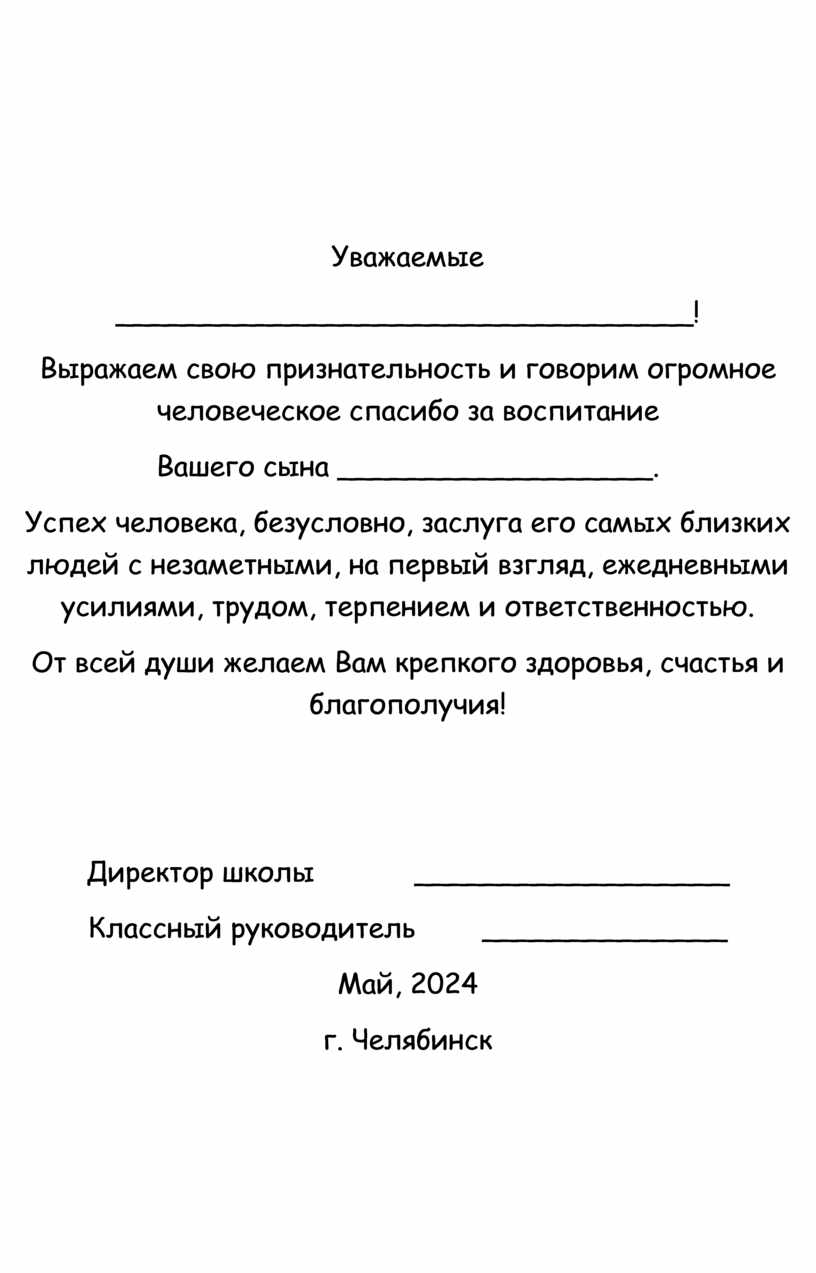 Выражаем свою признательность и говорим огромное человеческое спасибо за воспитание