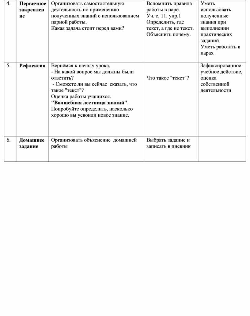 1.Постановка проблемного вопроса – Прочитайте, какое слово мы с вами записали на минутке красивого письма еще раз. – Вы догадались, о чём пойдёт речь сегодня на уроке русского языка? На доске слово «текст» Что означает это слово? - Какой вопрос возникает? На доске Что такое текст? - Чему мы будем продолжать учиться? 2. Введение нового понятия Организовать «открытие» детьми нового знания - А где мы можем узнать, что такое "текст"? –А ещё можно подумать самим. Мы не раз сочиняли с вами сказки, рассказы, загадки. Вы не раз слышали слово «текст». Что же такое текст?