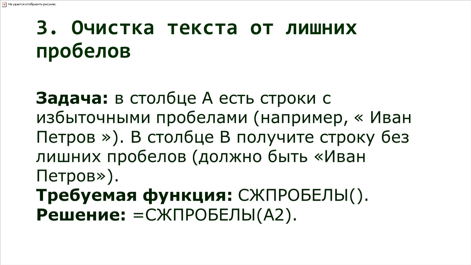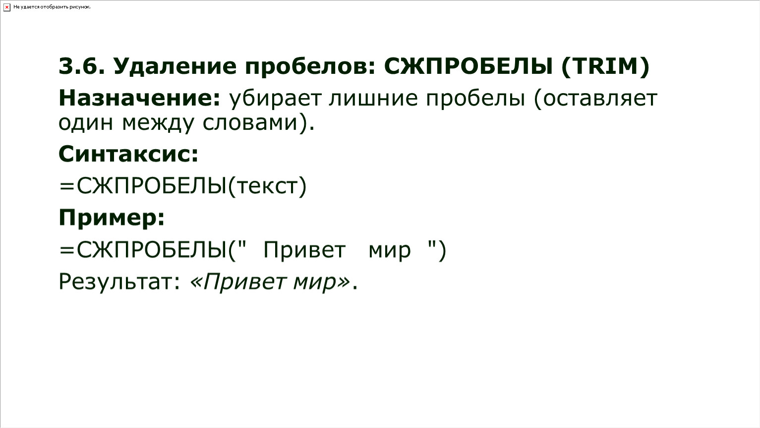 3.6. Удаление пробелов: СЖПРОБЕЛЫ (TRIM)