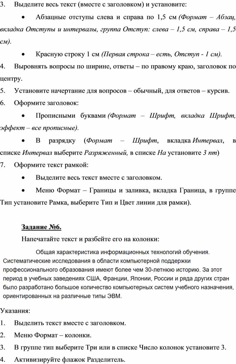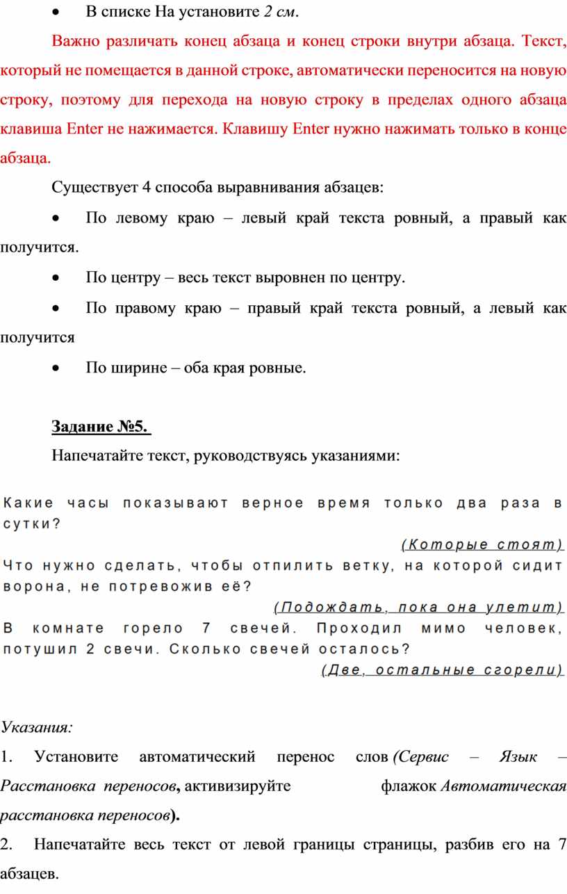 2. Напечатайте весь текст от левой границы страницы, разбив его на 7 абзацев.