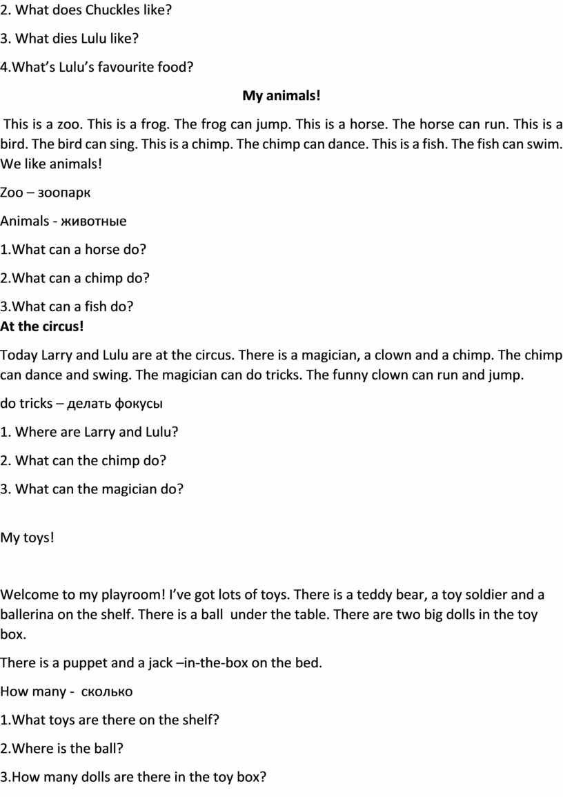 Сборник текстов для чтения на английском языке для учащихся 2 класса.