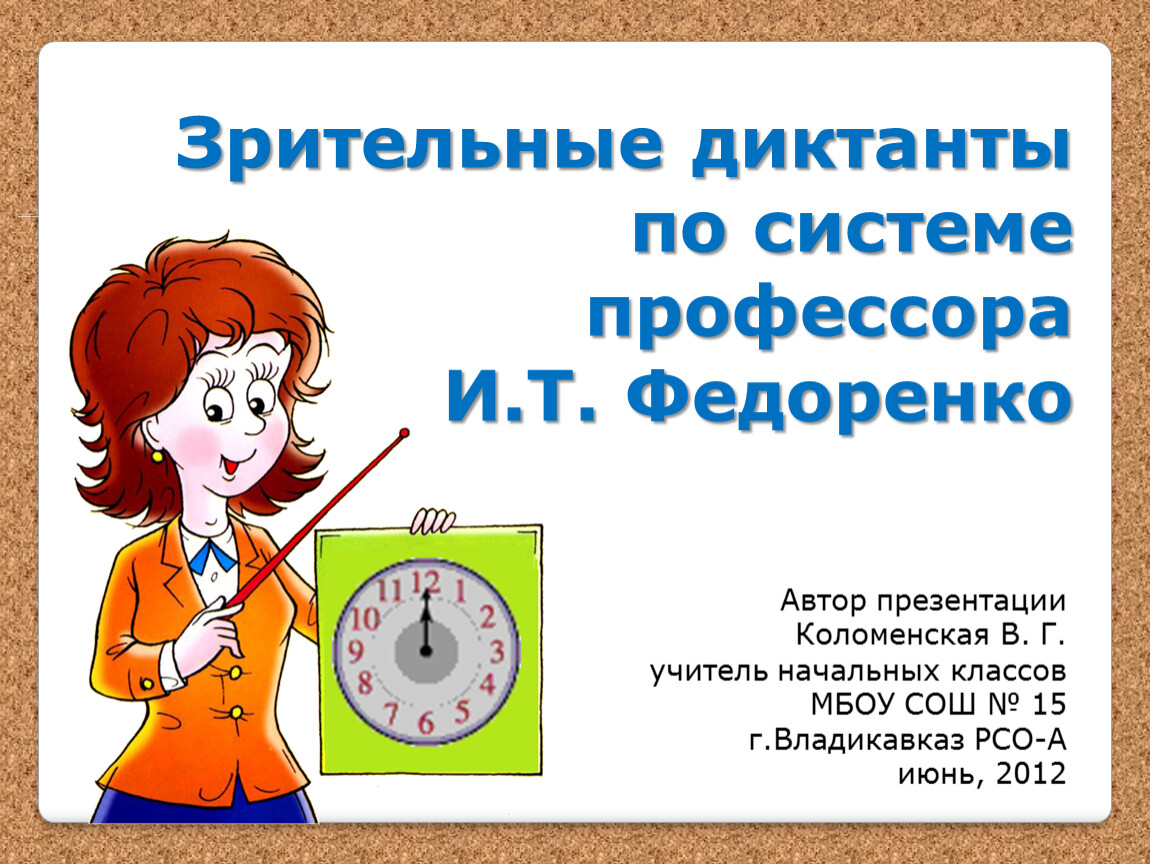 Зрительные диктантыпо системепрофессораИ.Т. Федоренко