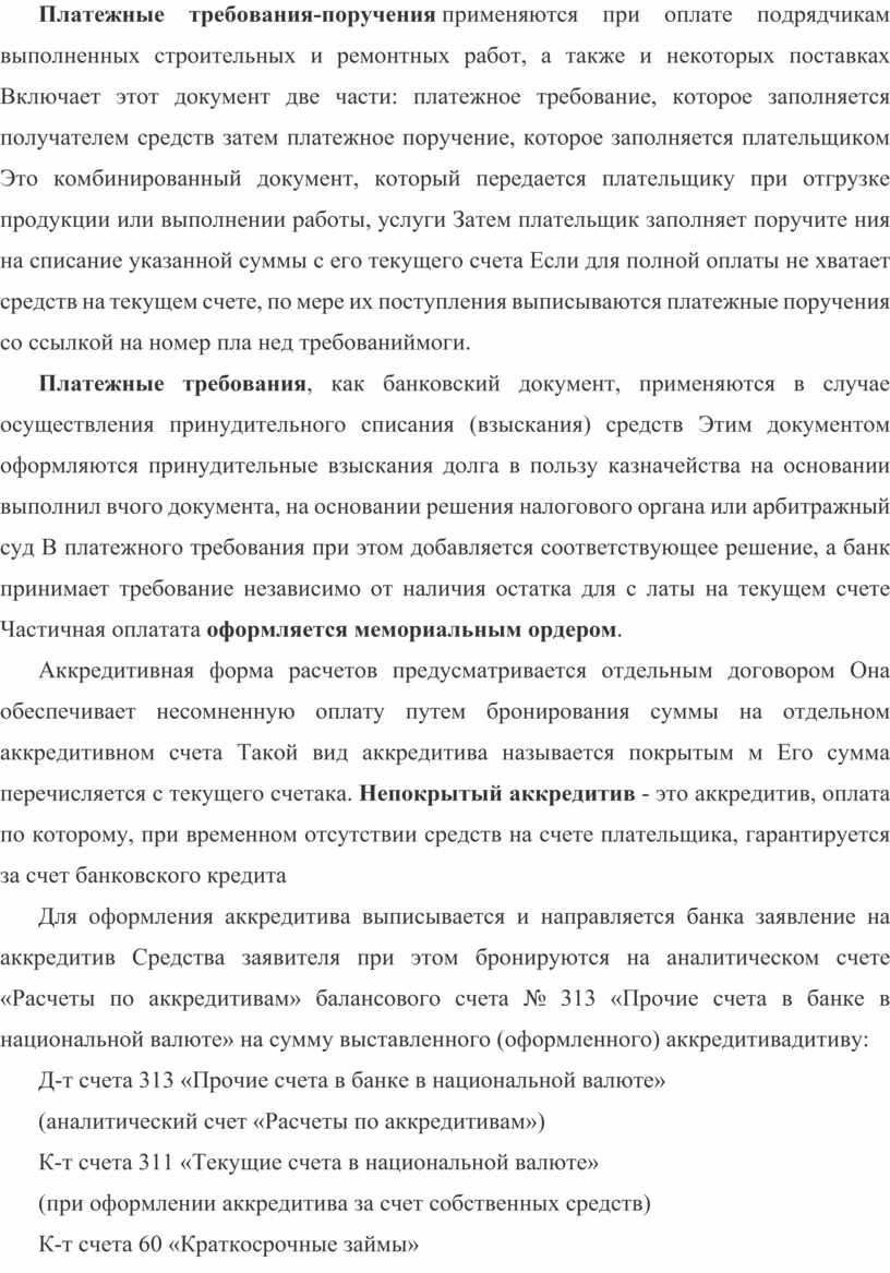 Аккредитивная форма расчетов предусматривается отдельным договором Она обеспечивает несомненную оплату путем бронирования суммы на отдельном аккредитивном счета Такой вид аккредитива называется покрытым м Его сумма перечисляется с текущего счетака. Непокрытый аккредитив - это аккредитив, оплата по которому, при временном отсутствии средств на счете плательщика, гарантируется за счет банковского кредита