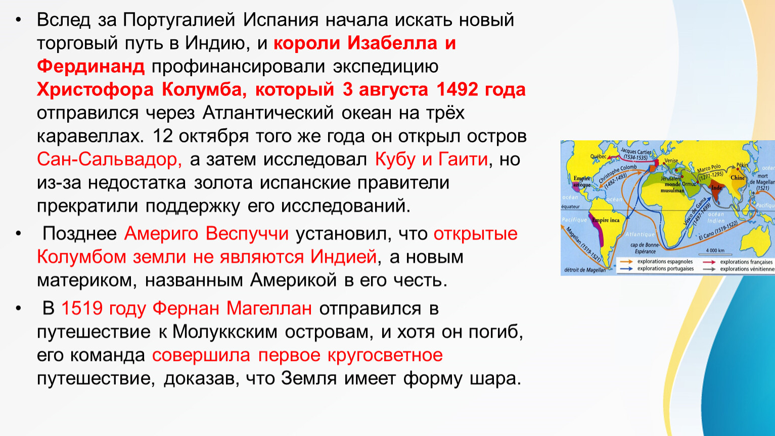 Позднее Америго Веспуччи установил, что открытые Колумбом земли не являются Индией, а новым материком, названным Америкой в его честь.