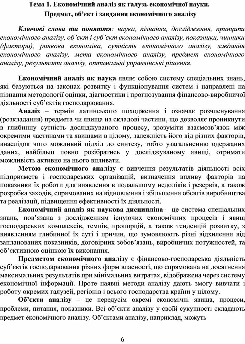 Тема 1. Економічний аналіз як галузь економічної науки. Предмет, об’єкт і завдання економічного аналізу