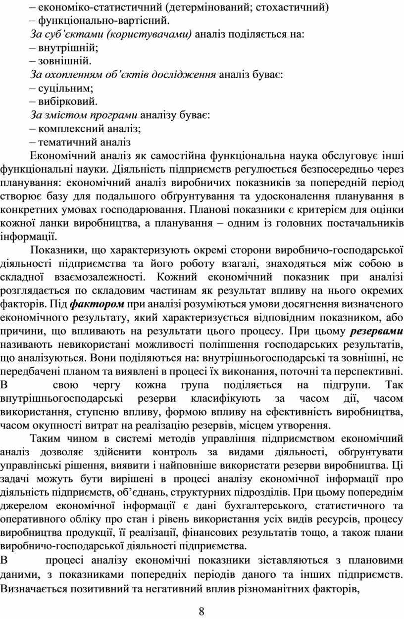 Таким чином в системі методів управління підприємством економічний аналіз дозволяє здійснити контроль за видами діяльності, обґрунтувати управлінські рішення, виявити і найповніше використати резерви виробництва. Ці задачі можуть бути вирішені в процесі аналізу економічної інформації про діяльність підприємств, об’єднань, структурних підрозділів. При цьому попереднім джерелом економічної інформації є дані бухгалтерського, статистичного та оперативного обліку про стан і рівень використання усіх видів ресурсів, процесу виробництва продукції, її реалізації, фінансових результатів тощо, а також плани виробничо-господарської діяльності підприємства.