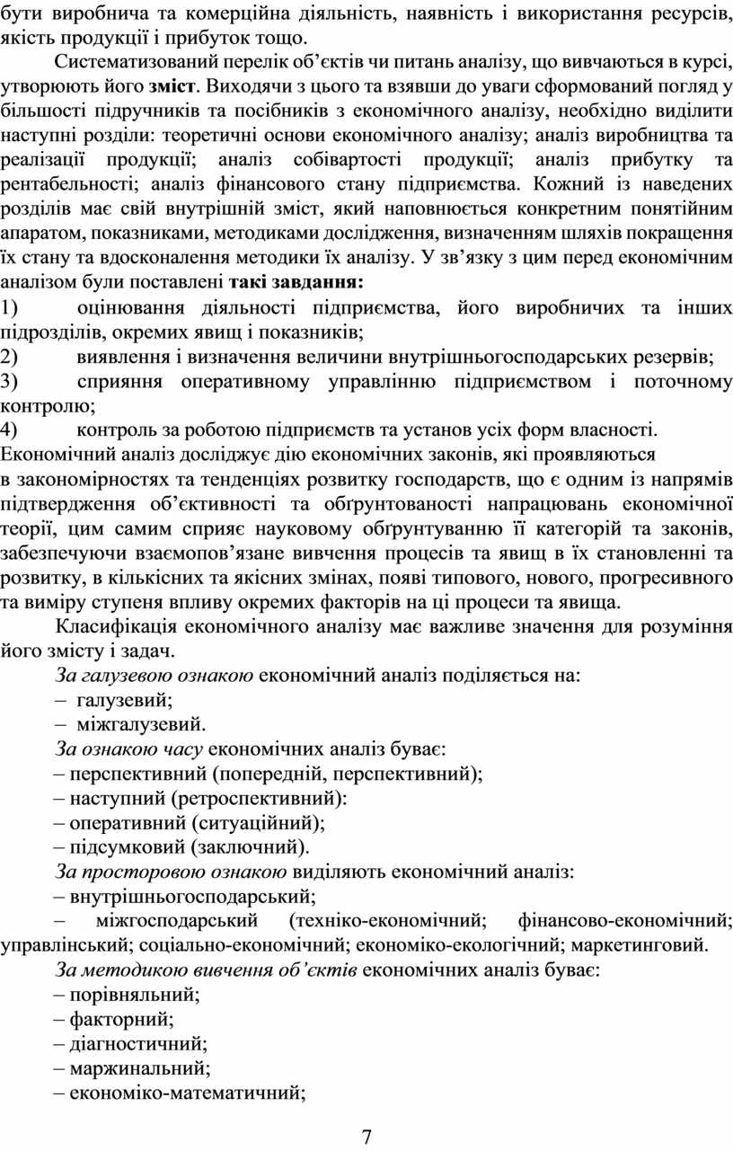 Предметом економічного аналізу є фінансово-господарська діяльність суб’єктів господарювання різних форм власності, що спрямована на досягнення максимальних результатів при мінімальних витратах, відображена через систему економічної інформації. Проте наявні методи аналізу дають змогу вивчати і роботу окремих галузей, регіонів і всього господарства країни у цілому.