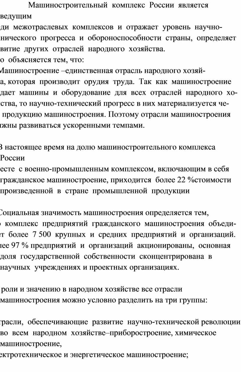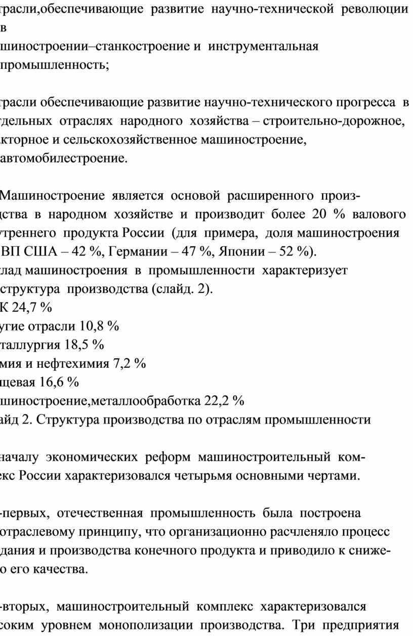 ТЕМА 1. МАШИНОСТРОЕНИЕ РОССИИ И ЕГО ОТРАСЛЕВАЯ СТРУКТУРА