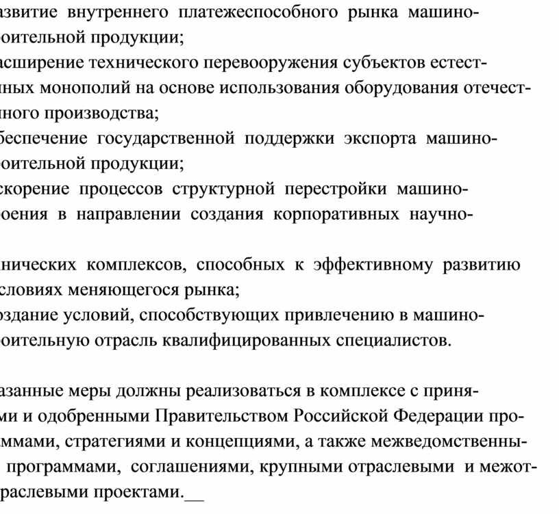 - развитие внутреннего платежеспособного рынка машино-
