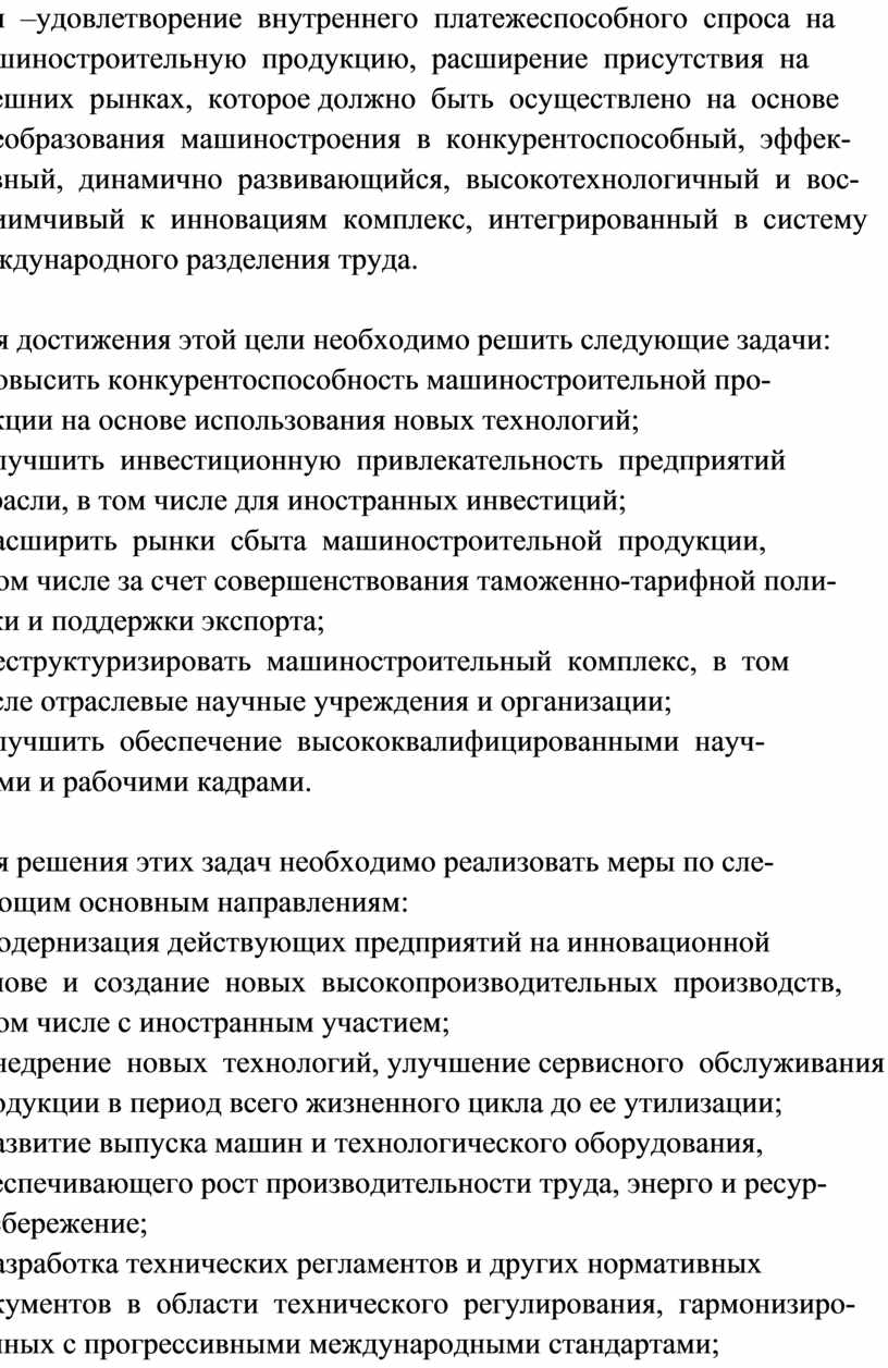 Основная цель развития машиностроительного комплекса Рос-