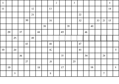 Содержание задания: двигаясь в направлении часовой стрелки по спирали от цифры 1 к цифре 49, разгадайте все слова в чайнворде.