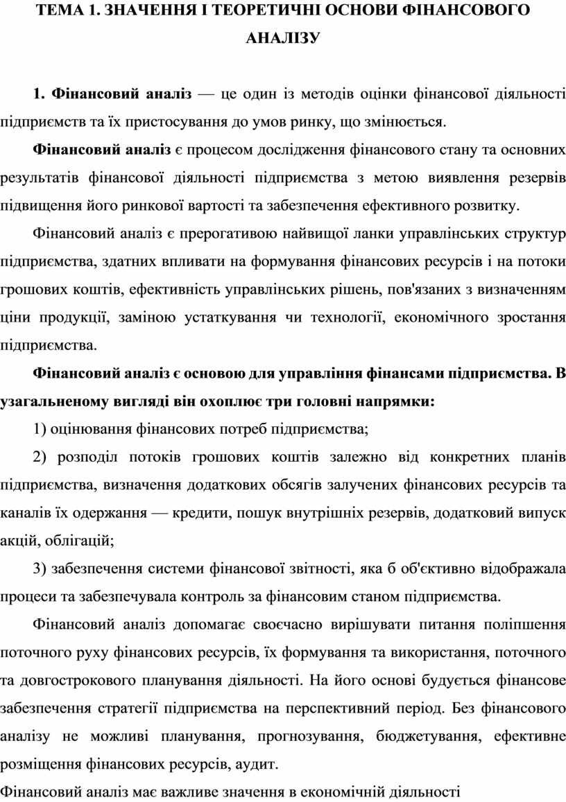 ТЕМА 1. ЗНАЧЕННЯ І ТЕОРЕТИЧНІ ОСНОВИ ФІНАНСОВОГО АНАЛІЗУ