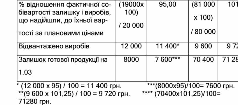 Множенням знайденого процента на суму відвантаженої продукції знаходять фактичну собівартість відвантаженої продукції.