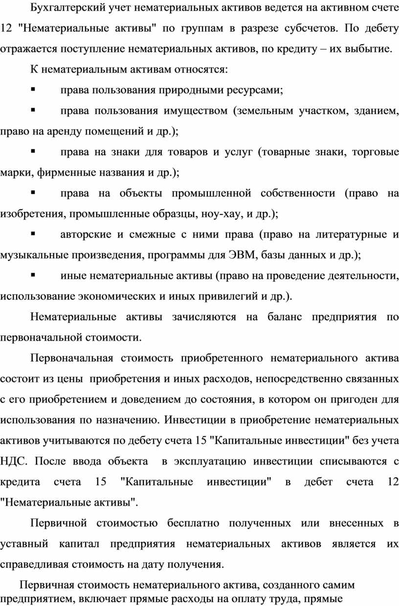 12 «Нематериальные активы» 125 «Авторские и смежные с ними права» |