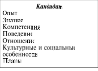 Этот этап может осуществляться с помощью специального теста «Оценка кандидата на рабочее место» (приложение 4), который по-зволяет посмотреть на проблему оценки претендентов под несколь-ко другим углом зрения.