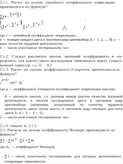 Ранг качества трудовой деятельности < 2 , исследуемый цвет в числовом ряду занимает позиции с 1 по 4; или ранг качества трудо-вой деятельности ≥ n , исследуемый цвет в числовом ряду занимает