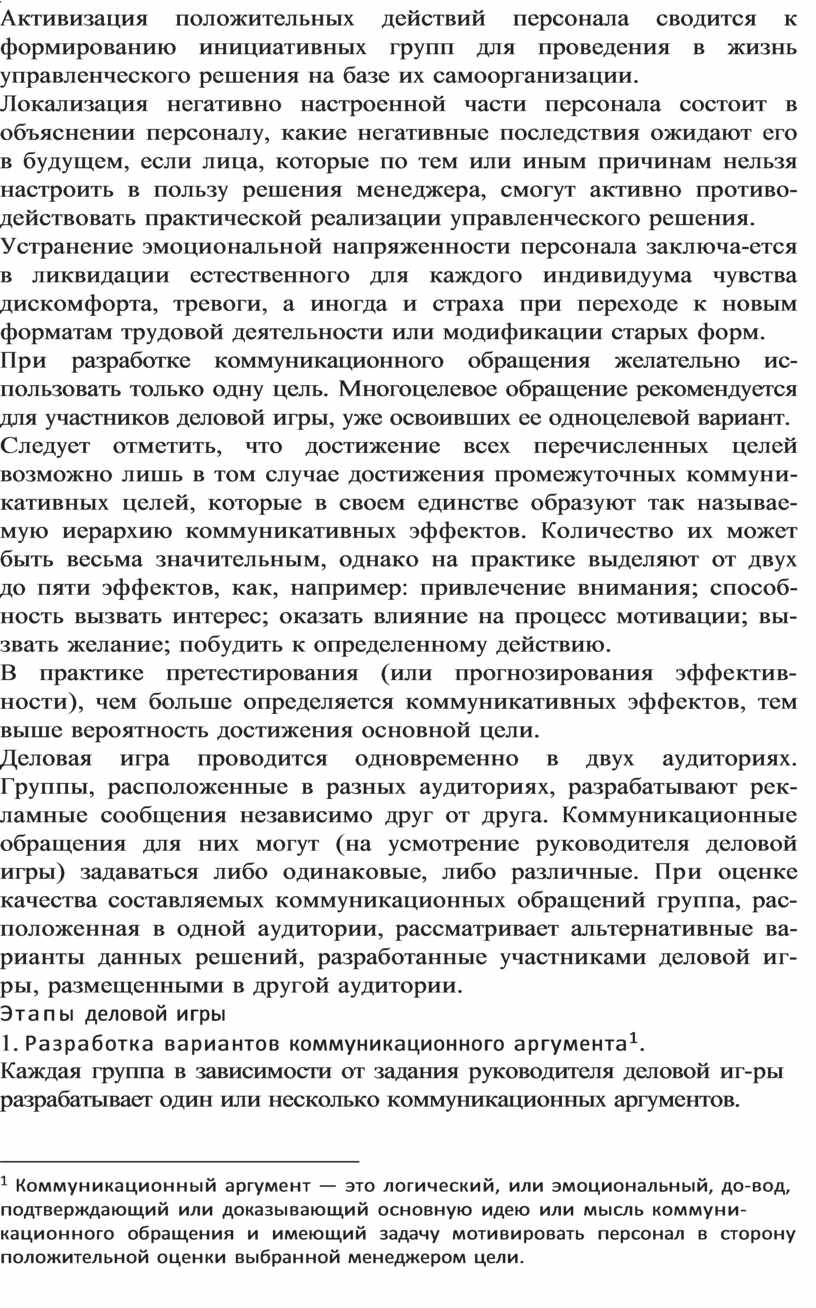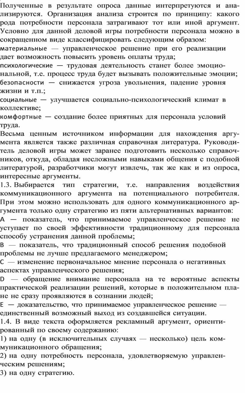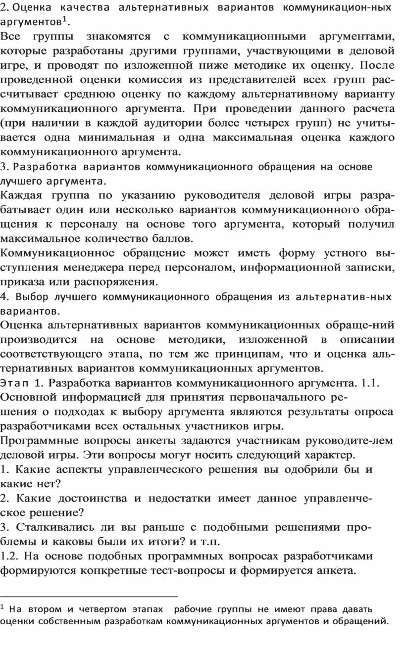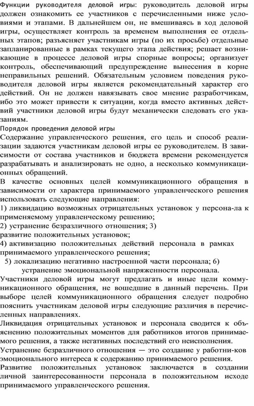 3.2. Анализируя сделанные участниками деловой игры предло-жения, руководитель показывает основные варианты решения по-добной проблемы, применяемые на практике (если эти варианты так и не были сформулированы участниками деловой игры).