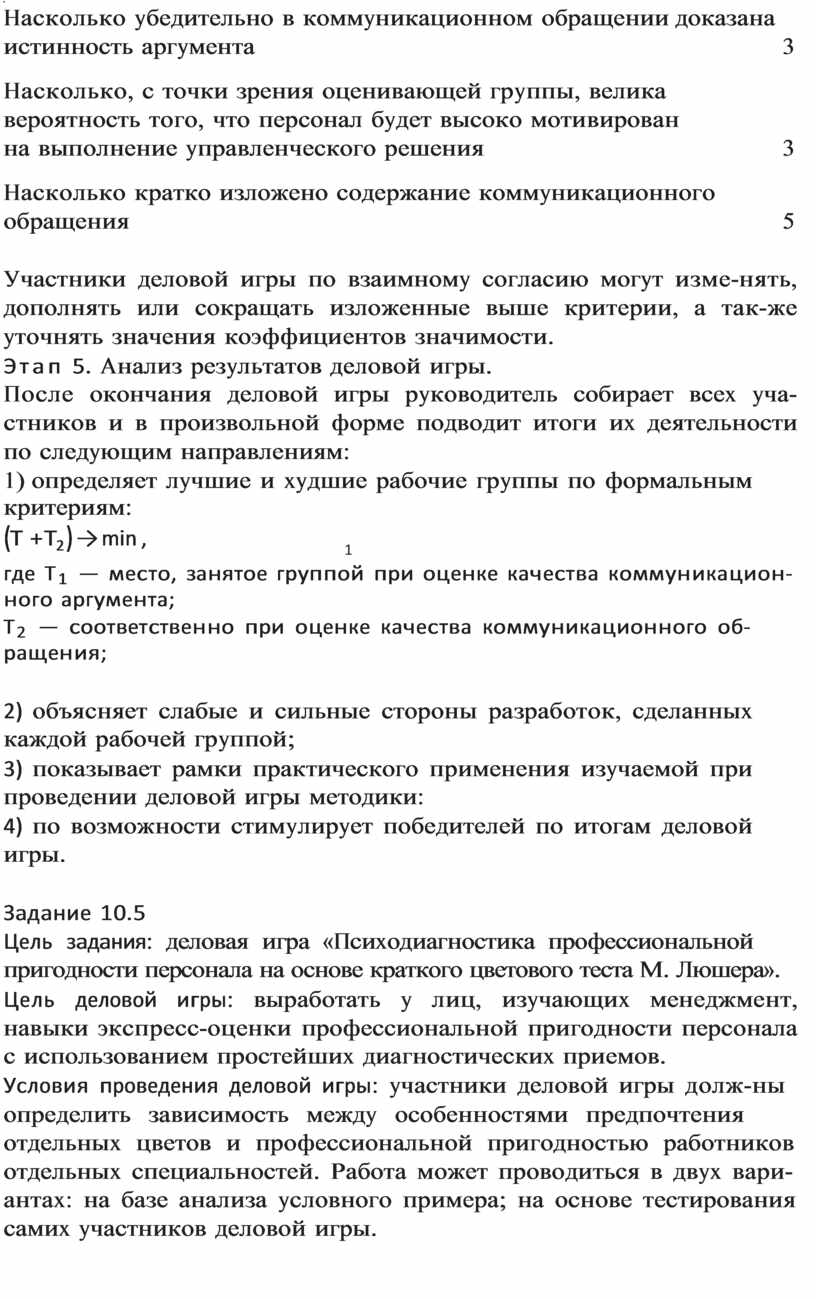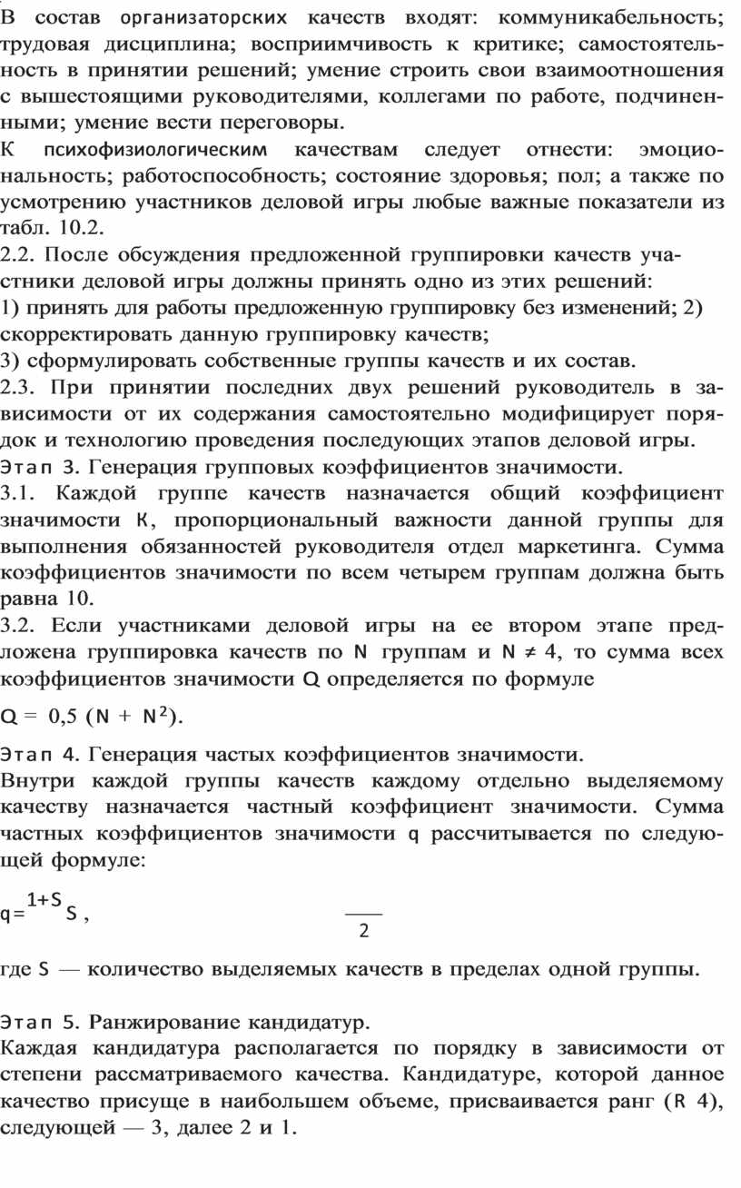 2. Генерация критериев оценки профессиональной пригодности. Производится на основе полного или частичного принятия приве-денных ниже положений и путем их самостоятельной формулиров-ки участниками деловой игры.