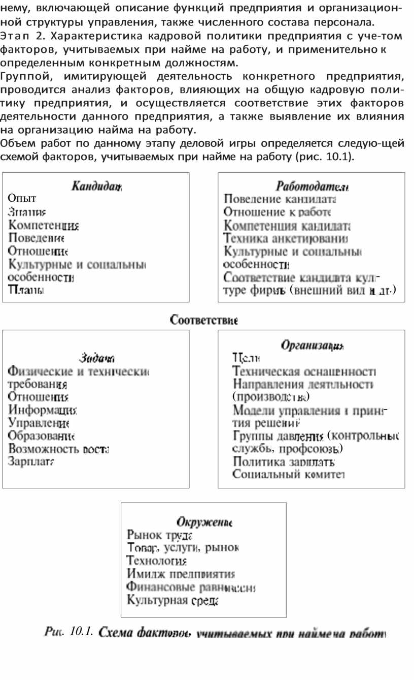 Объем работ по данному этапу деловой игры определяется следую-щей схемой факторов, учитываемых при найме на работу (рис. 10.1).